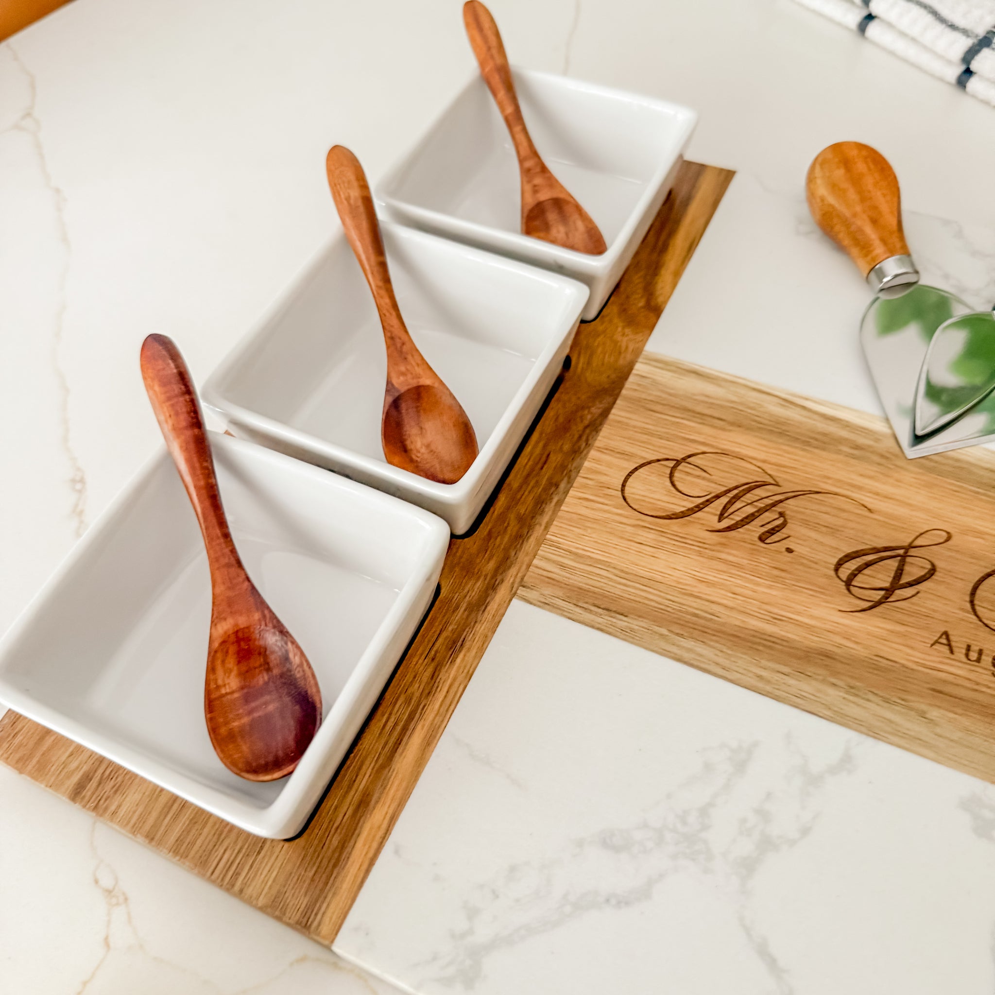This charcuterie board can be customized with a name, a couple's names, or a special date, making it an ideal gift for weddings, anniversaries, housewarmings, or holidays. It's a thoughtful and practical present that will be cherished for years to come.