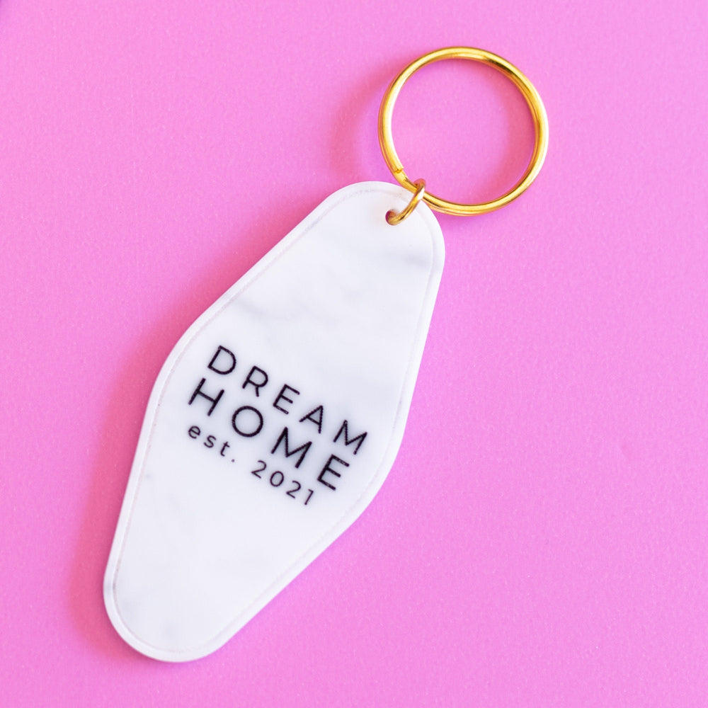 Dream Home Motel Style Marble Acrylic Keychain for Closing Day Gift