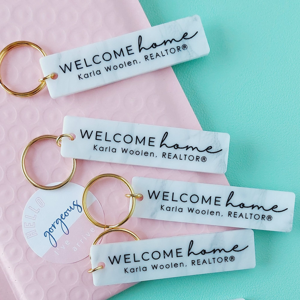 Closing keys just got more fun! Add a pop to your clients new keys on closing day with these beautifully designed keychains. You'll be sure to find one that suits your buyer!